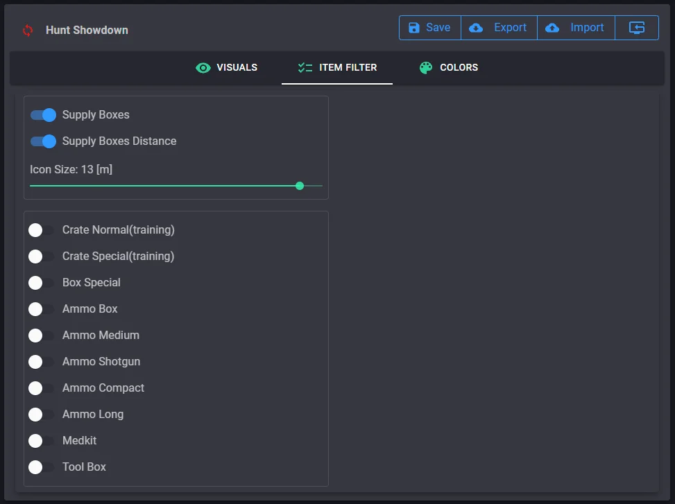[+] Item Color ( Ammo Medium / Ammo Shotgun / Ammo Compact / Ammo Long / Medkit )